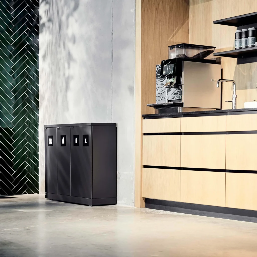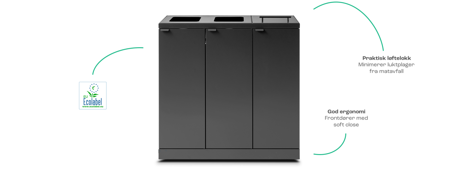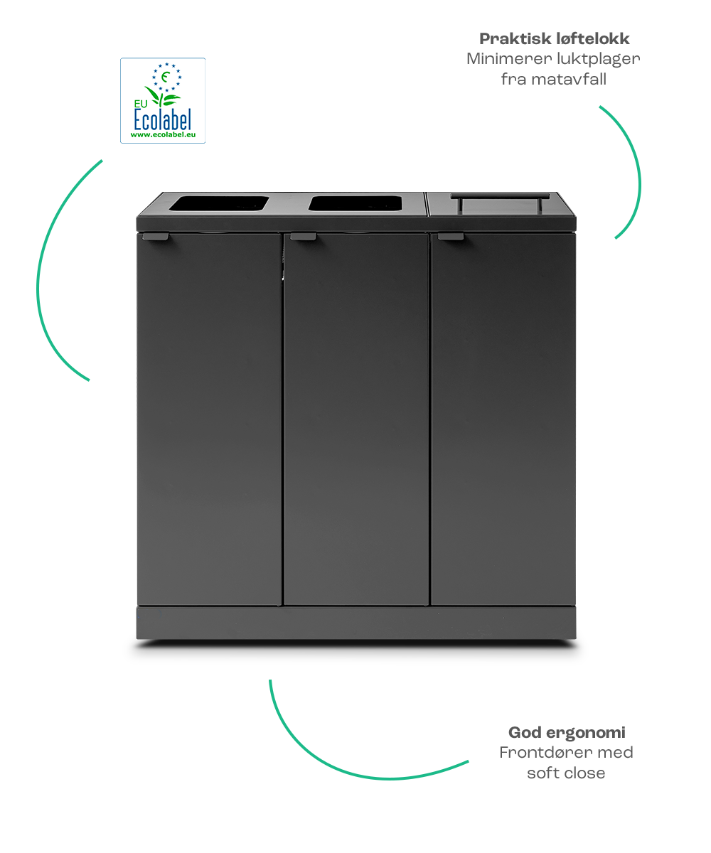 Et avfallssystem skal passe inn på kontoret og i fellesområdene. Du og dine ansatte skal gå rett forbi og bare stoppe når dere trenger å kvitte dere med avfallet. Dere skal ikke være i tvil om hva som skal i hvilke beholdere. Hvis du spør oss, er avfallssortering god stil og en selvfølge i hverdagen.