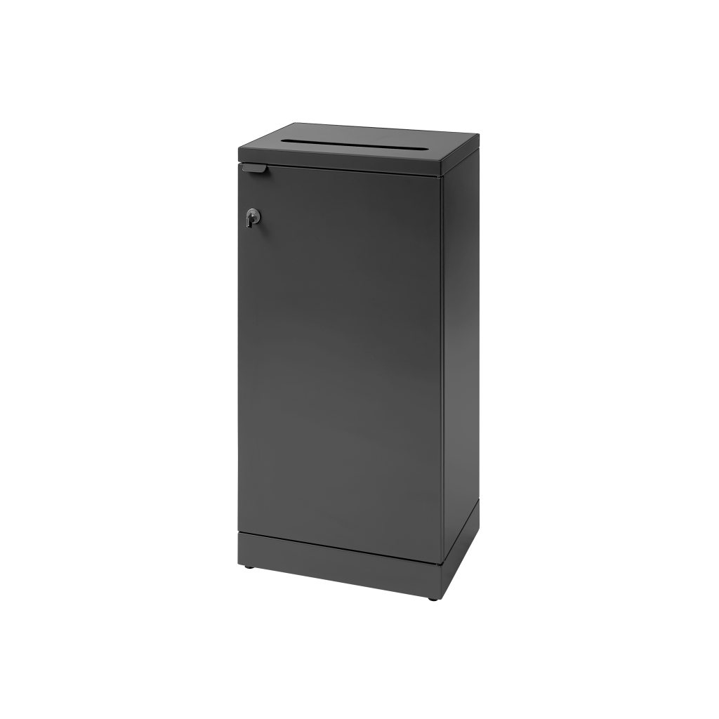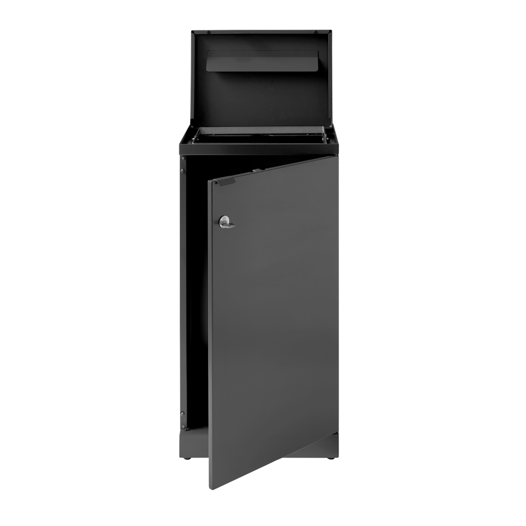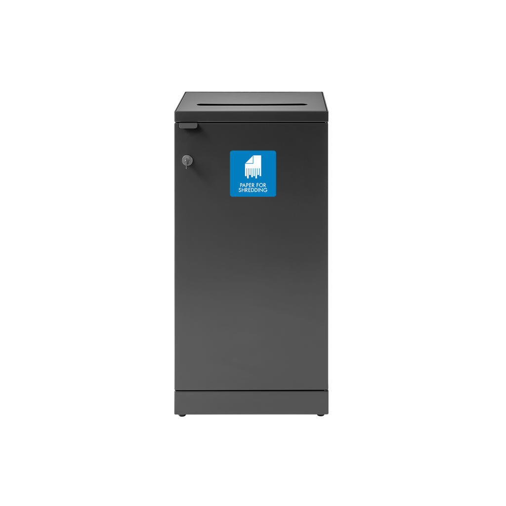 Fleksibel avfallsbeholder fra Bica sørger for enkel og brukervennlig avfallssortering på arbeidsplassen. Avfallsbeholderen er utformet med et langstrakt og smalt innkast egnet for sikkerhetspapir. Den er utstyrt med vippelås slik at papiret oppbevares trygt.