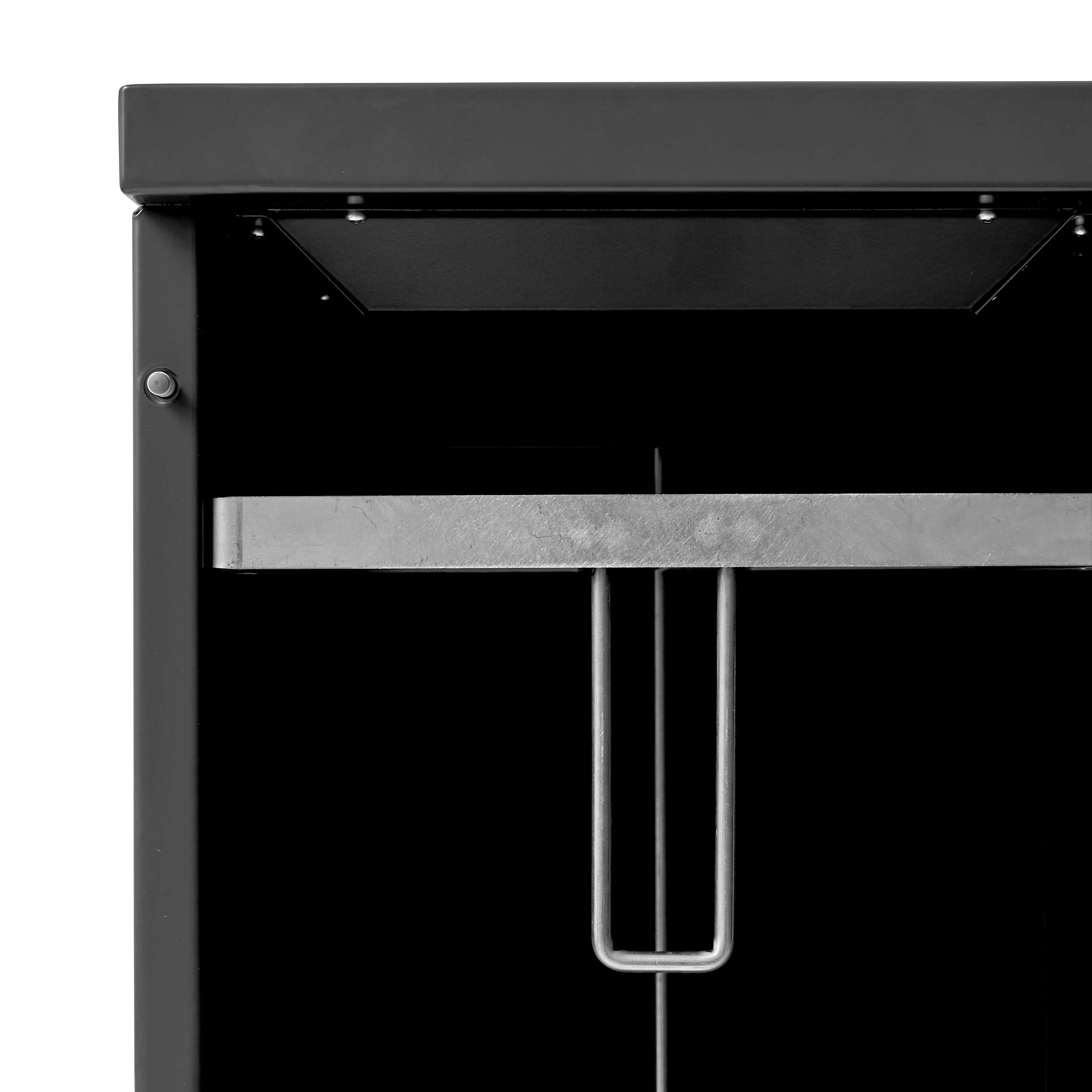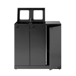 Avfallssystemet er utstyrt med frontdører med soft close for ergonomisk riktig tømming uten tunge løft. Avfallssystemet er utstyrt med integrerte og sterke poseholdere, slik at posen blir liggende. Det er montert et gassdemper i lokket for lydløs og stille lukking, og lokket skjuler også posene, slik at avfallssystemet holder et stilrent design. Avfallssystemet er utstyrt med justerbare føtter, som er skjult bak sokkelen.