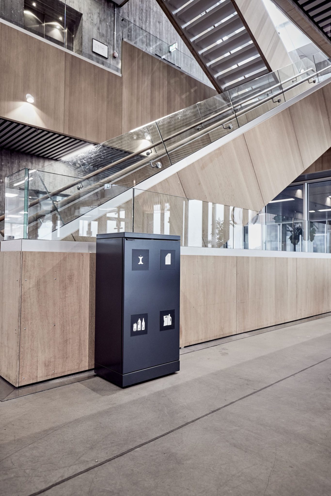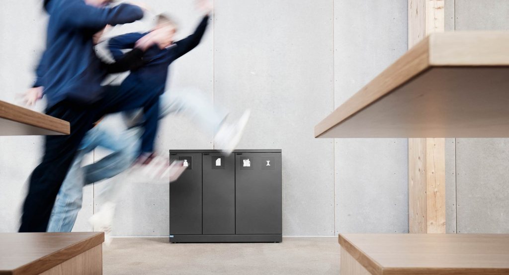 Sagt på en annen måte: Har du 20 medarbeidere samlet i et åpent kontormiljø, skal avfallsstasjonen plasseres maks. 20 meter fra arbeidsplassen deres. Ellers risikerer du at medarbeiderne ikke bruker løsningen riktig. De skal endre adferd fra å kaste papir i en papirkurv under skrivebordet til å reise seg og gå et lite stykke. Derfor bruker vi 20/20‑regelen som anbefaling til våre kunder. Slik lykkes dere med kildesorteringen.
