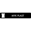 Veiled brukere til enklere avfallssortering med piktogrammer. Dette selvklebende piktogrammet med avrundede hjørner plasseres på toppen eller forsiden av avfallsbeholderen. Alle piktogrammer er vaskbare. Symbolene følger felles avfallssystem fra Rundskrivet til Brancheforeningen.