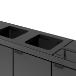Fleksibelt avfallssystem fra Bica sørger for enkel og brukervennlig avfallssortering på arbeidsplassen. Avfallssystemet er utformet med 4 fraksjoner, henholdsvis 3 åpne innkast og 1 med løftelokk. Løftelokk har gassfjær for lydløs lukking. Hensikten med lokket er å minimere luktplager og hindre bananfluer ved sortering av matavfall. En virkelig smart løsning hvis posen ikke tømmes veldig ofte.